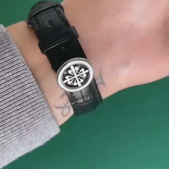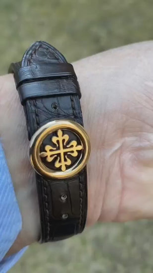 ✅ Hand-stitched alligator leather strap